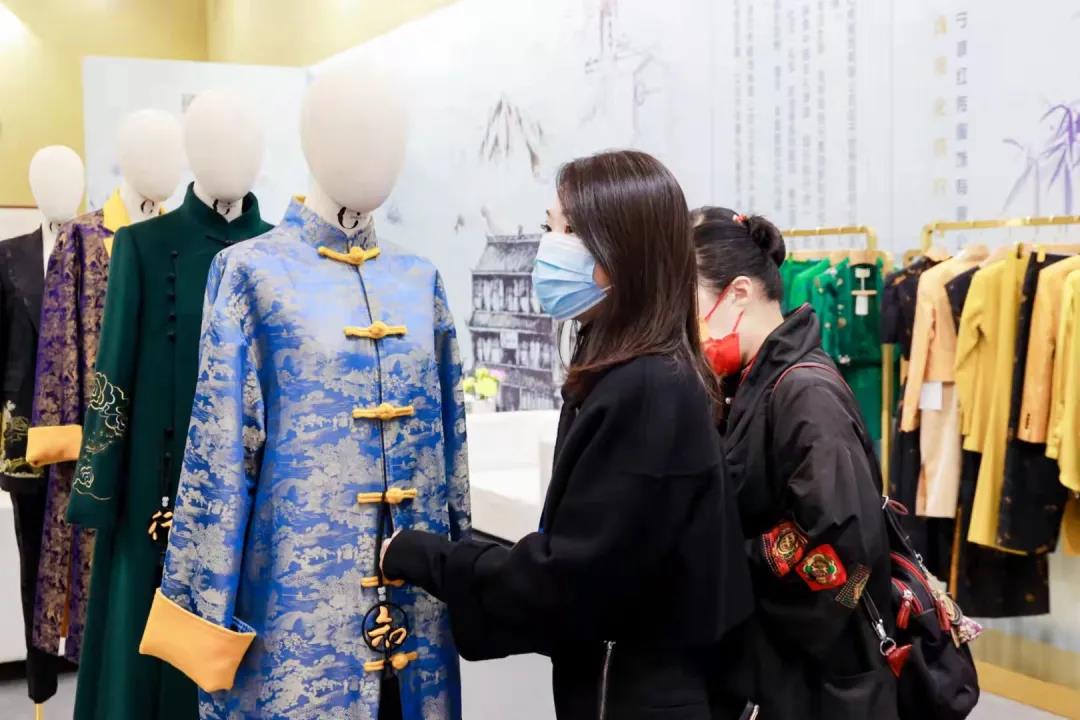 近幾年國潮風(fēng)成了風(fēng)靡全國乃至世界的IP。潮流原創(chuàng)展區(qū),來自余姚的紅傳服飾是一家致力于場景化成衣定制的服裝品牌。創(chuàng)始人介紹,在展區(qū)內(nèi)展示的不少產(chǎn)品采用了姚江邊標(biāo)志性建筑——舜江樓的元素以及王陽明心學(xué)思想的元素,既古典優(yōu)雅,飽含東方神韻,又兼具現(xiàn)代時尚,簡約時髦。