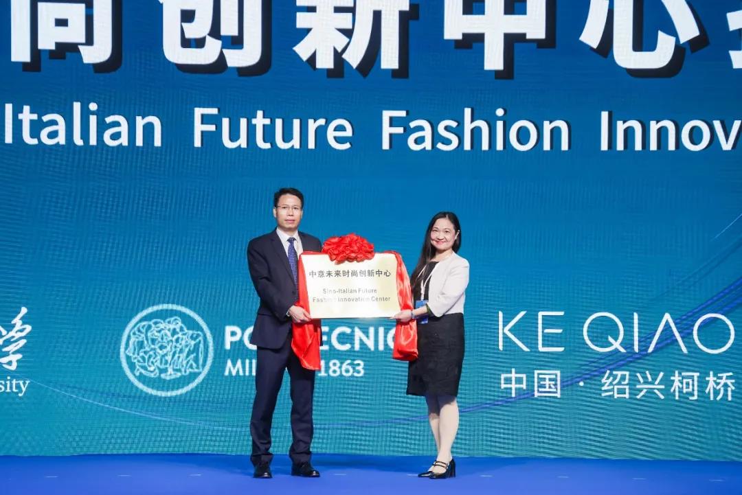 為推動時尚創(chuàng)新領域的國際化人才交流,國際優(yōu)質(zhì)資源“請進來”和柯橋企業(yè)“走出去”,促進紡織設計產(chǎn)業(yè)向高端化轉(zhuǎn)變,由柯橋區(qū)人民政府與清華大學中意設計創(chuàng)新基地合作建設的國際化綜合平臺“中意未來時尚創(chuàng)新中心”在會上舉行了揭牌儀式。中共紹興市柯橋區(qū)委常委、組織部部長丁貴,清華大學中意設計創(chuàng)新基地管委會秘書長楊慶梅在會上一同揭牌,見證了中意國際化交流創(chuàng)新平臺的成立。