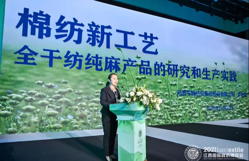 河南平棉紡織集團股份有限公司總工程師李季媛主題演講: 《 棉紡新工藝全干紡純麻紗和面料的研究和生產實踐》。近年來,河南平棉紡織集團股份有限公司充分發(fā)揮自身優(yōu)勢,利用棉紡設備在亞麻大麻紡紗上實現(xiàn)了創(chuàng)新和實質性突破,在不斷的探索中實現(xiàn)了技術的跨界融合和產品的跨界發(fā)展,為企業(yè)在激烈的市場競爭中創(chuàng)造全新的機遇,拓展了市場空間。