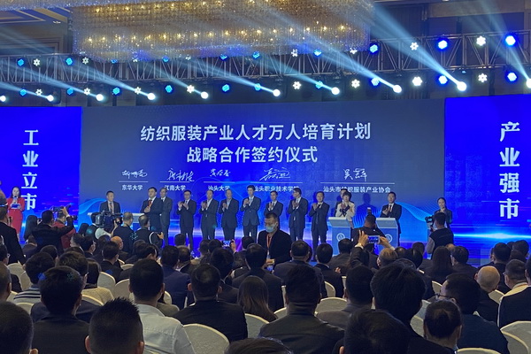 會(huì)議現(xiàn)場(chǎng),同期舉行汕頭紡織服裝產(chǎn)業(yè)協(xié)會(huì)與金融授權(quán)、物流快遞、人才培育、專家智庫等多項(xiàng)簽約儀式。集各行各業(yè)之力,共創(chuàng)汕頭紡織服裝產(chǎn)業(yè)之繁榮。