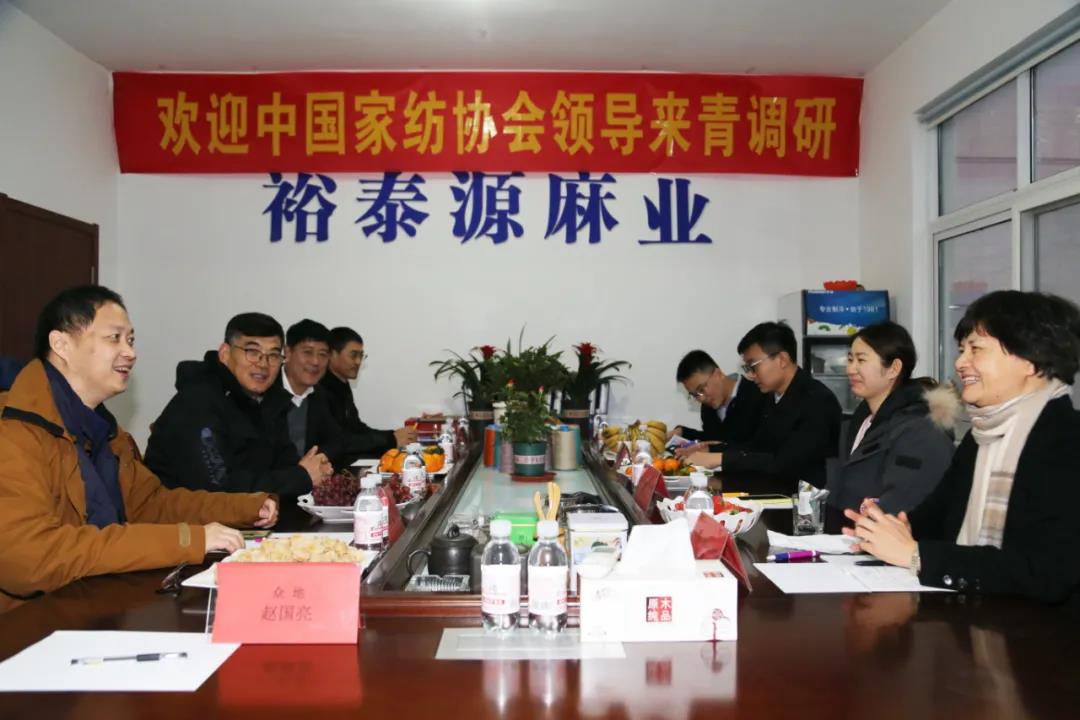 為進一步深入了解青島家紡產(chǎn)業(yè)集群發(fā)展、企業(yè)情況以及遇到的問題,12月22-23日,中國家用紡織品行業(yè)協(xié)會副會長朱曉紅、辦公室主任阮航,中國紡織貿(mào)促會家紡展覽部副主任朱勤一行5人(以下簡稱“中家紡一行”),在青島家紡協(xié)會會長王如平、秘書處毛光亮的陪同下,參觀走訪了青島邦特生態(tài)紡織科技有限公司、青島絲諾紡織品有限公司、青島金泰家紡有限公司、眾地家紡有限公司、青島裕泰源麻業(yè)染整有限公司、青島羽翎珊家紡織品集團有限公司和青島莫特斯家居用品有限公司。此次參觀的企業(yè)特色鮮明,在新材料、新工藝、新時尚以及細分領域方面具有獨特的優(yōu)勢地位。