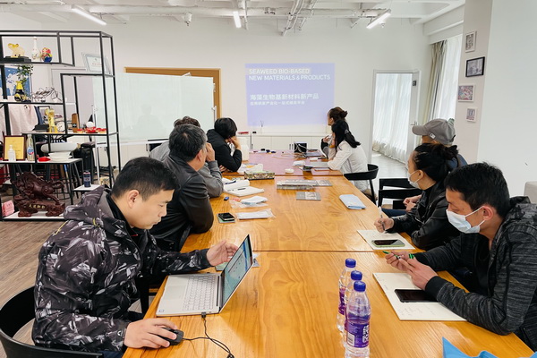 接著源海新科王總介紹了海藻纖維的發(fā)展歷程,作為海藻纖維的主要投資方,王總也看好海藻纖維的發(fā)展前景,并積極投入海藻纖維的推廣應(yīng)用中來。海藻纖維下游產(chǎn)品開發(fā)代表單位山東奈琦爾海洋科技有限公司設(shè)計總監(jiān)姜雅慧介紹海藻纖維的應(yīng)用。座談期間莫特斯總工程師青島資深染整專家苗永軍對海藻纖維的產(chǎn)品性能與來訪的源海新科一行人進行了探討!