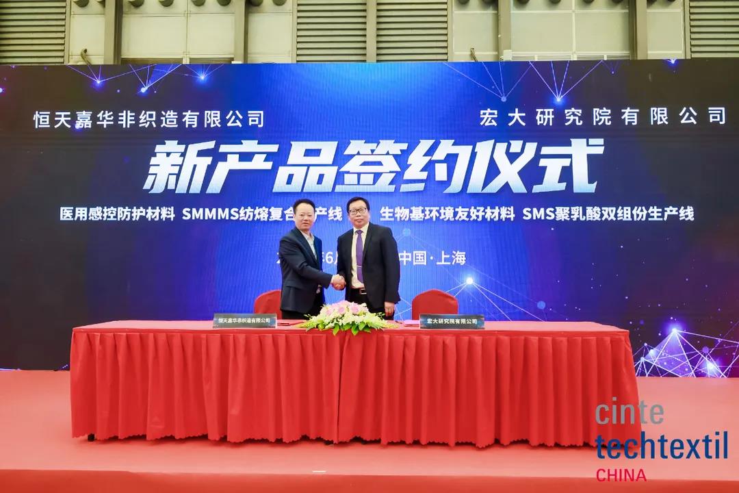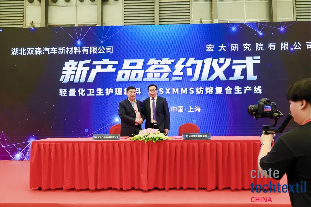 會(huì)上還舉辦了3個(gè)簽約儀式,分別為:湖北雙森汽車新材料有限公司與宏大進(jìn)行了“輕量化衛(wèi)生護(hù)理材料 SSXMMS紡熔復(fù)合生產(chǎn)線”簽約;恒天嘉華非織造有限公司與宏大進(jìn)行了“醫(yī)用感控防護(hù)材料SMMMS紡熔復(fù)合生產(chǎn)線、生物基環(huán)境友好材料、SMS聚乳酸雙組份生產(chǎn)線”簽約;Soar Canada Material Ltd.與宏大進(jìn)行了“加拿大索爾國際醫(yī)衛(wèi)材料一期項(xiàng)目”簽約。