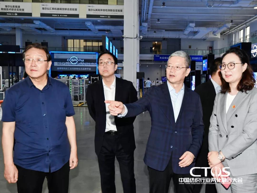 大會(huì)現(xiàn)場(chǎng),來自中國紡織工業(yè)聯(lián)合會(huì)的領(lǐng)導(dǎo)有:中國紡織工業(yè)聯(lián)合會(huì)黨委書記兼秘書長高勇、原副會(huì)長許坤元、副會(huì)長夏令敏、原副會(huì)長楊紀(jì)朝、副秘書長兼外事辦主任袁紅萍;來自工業(yè)和信息化部的領(lǐng)導(dǎo)有:工業(yè)和信息化部原副部長楊學(xué)山、消費(fèi)品工業(yè)司一級(jí)巡視員曹學(xué)軍;來自青島市的領(lǐng)導(dǎo)有:青島市人民政府副市長耿濤、青島市工業(yè)和信息化局副局長馮偉;來自地方協(xié)會(huì)的領(lǐng)導(dǎo):山東省紡織服裝行業(yè)協(xié)會(huì)執(zhí)行會(huì)長劉建國、江蘇省紡織工業(yè)協(xié)會(huì)會(huì)長韓平、河南省紡織行業(yè)協(xié)會(huì)常務(wù)會(huì)長袁建龍、安徽省紡織行業(yè)協(xié)會(huì)執(zhí)行會(huì)長葉梁;來自海爾的負(fù)責(zé)人有:海爾智家副總裁李洋、卡奧斯紡織服裝行業(yè)總經(jīng)理王曉鳳;以及來自其他紡織產(chǎn)業(yè)集群的領(lǐng)導(dǎo)、嘉賓和媒體記者共400余人。