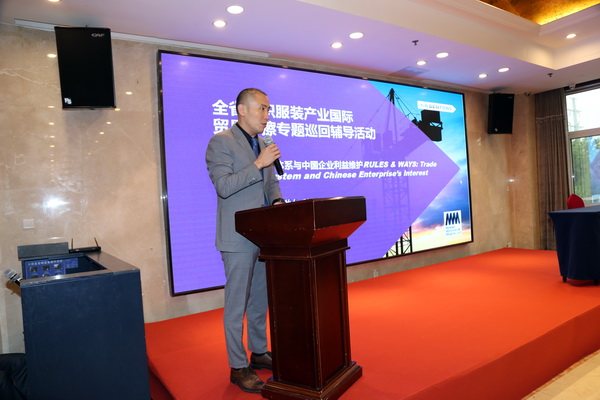 本次活動邀請到北京大成律師事務(wù)所合伙人孫磊律師、北京服裝學(xué)院商學(xué)院郭燕教授、山東外貿(mào)職業(yè)學(xué)院副院長劉珉教授等3位國內(nèi)外貿(mào)領(lǐng)域資深專家。他們分別就全球貿(mào)易救濟(jì)體系與中國企業(yè)利益維護(hù)、紡織行業(yè)的國際貿(mào)易摩擦趨勢及應(yīng)對、國際貿(mào)易發(fā)展趨勢和外貿(mào)風(fēng)險防范等課題,作了精彩講解和互動。