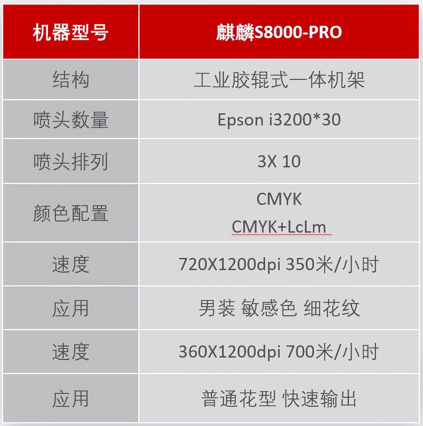 億力產(chǎn)品經(jīng)理劉翔發(fā)布新品麒麟S8000i膠輥型工業(yè)級數(shù)碼印花機(30H):搭載30個愛普生I3200打印頭,支持4/6色,最大打印寬幅2米,1pass打印1200㎡/h,2pass打印600㎡/h,使用分散墨水,適用于打紙熱轉印工藝,是數(shù)碼印花工廠大批量生產(chǎn)的利器。