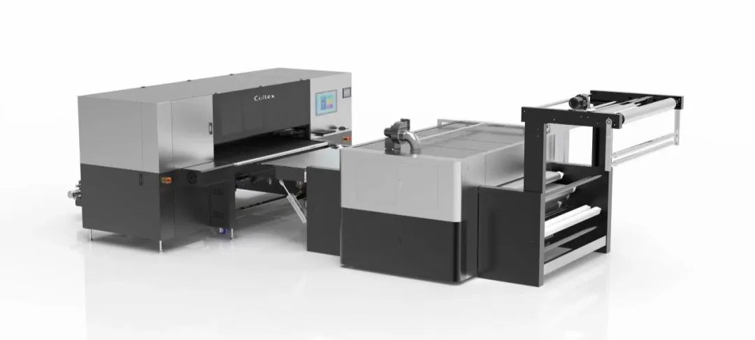 另,現(xiàn)場還有麒麟XT-40導帶直噴機:適用于數(shù)碼直噴工藝。搭載48個愛普生S3200打印頭,打印精度高、速度快,最快打印360㎡/h,墨水適應性廣,可支持最多12色打印,可適用高溫分散、活性、酸性、涂料墨水直噴工藝,以及純棉,棉麻、尼龍、混紡等多種面料。