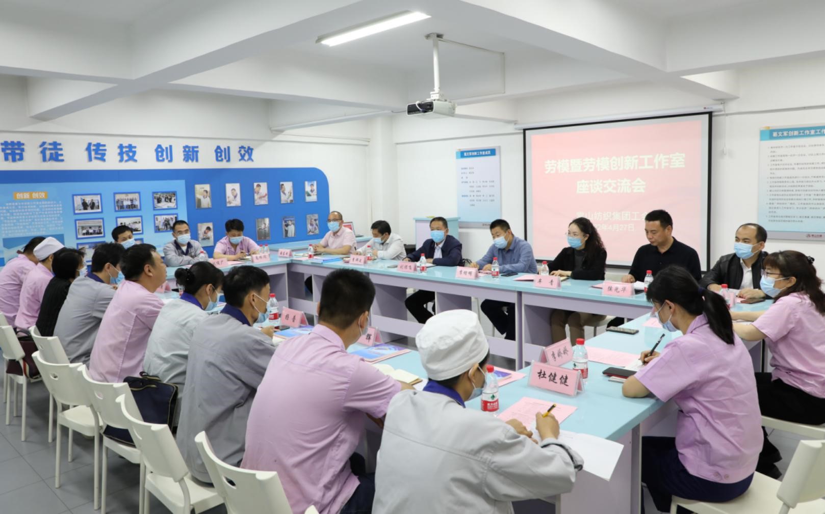 光榮屬于勞動者,幸福屬于奮斗者。4月27日,五一國際勞動節(jié)來臨之際,為進(jìn)一步弘揚(yáng)勞模精神、勞動精神和工匠精神,發(fā)揮勞模和勞模創(chuàng)新工作室?guī)絺骷?、?chuàng)新創(chuàng)效作用,引領(lǐng)廣大職工愛崗敬業(yè)、爭創(chuàng)一流,艱苦奮斗、勇于創(chuàng)新,淡泊名利、甘于奉獻(xiàn),石家莊常山紡織集團(tuán)工會組織的勞模暨勞模創(chuàng)新工作室交流座談會在恒盛紡織分公司葛文軍創(chuàng)新工作室圓滿召開。石家莊市紡織工會主席李增明、市紡織工會副主席牟青、常山紡織集團(tuán)董事劉保飛等領(lǐng)導(dǎo)出席會議,常山紡織集團(tuán)所屬企業(yè)有關(guān)領(lǐng)導(dǎo)和勞模代表、勞模創(chuàng)新工作室?guī)ь^人及骨干參加座談交流。會議由常山紡織集團(tuán)工會副主席侯光華主持。