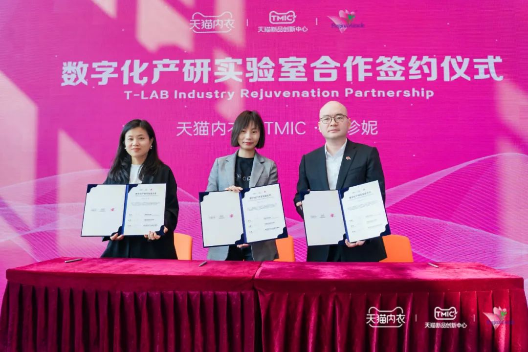 5月20日,天貓與維珍妮成立T-LAB數(shù)字化產(chǎn)研實驗室,進軍C2B創(chuàng)新模式。深圳市內(nèi)衣行業(yè)協(xié)會、深圳市心衣創(chuàng)新研發(fā)中心受邀出席此次活動。