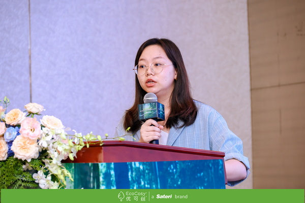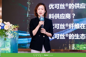 在產(chǎn)品創(chuàng)新報告分享環(huán)節(jié),賽得利集團優(yōu)可絲®市場經(jīng)理顏薈以《賽得利綠色時尚從源開始》為題,分享了賽得利在“林-漿-纖一體化”布局上的全流程閉環(huán)清潔生產(chǎn)的產(chǎn)業(yè)鏈優(yōu)勢,詳細介紹了以優(yōu)可絲®BV、優(yōu)可絲®安泰貝、優(yōu)可絲®菁彩為代表的優(yōu)可絲®系列纖維和循環(huán)再生纖維纖生代®,一系列完善的生態(tài)環(huán)保認證和透明供應鏈可追溯管理體系將推動再生纖維素纖維行業(yè)的綠色發(fā)展和低碳轉(zhuǎn)型。