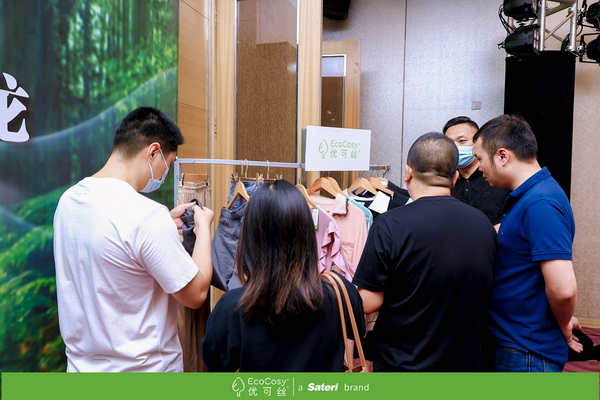 本次沙龍期間,主辦方在會場內(nèi)專門設置了優(yōu)可絲®產(chǎn)品展示區(qū),吸引了許多參會代表駐足觀看與交流,產(chǎn)品展示區(qū)服裝所用面料中,不少都出自于優(yōu)可絲®產(chǎn)品開發(fā)技術(shù)創(chuàng)新聯(lián)盟企業(yè)和優(yōu)可絲®BV·中國時尚面料設計大賽中優(yōu)可絲®產(chǎn)品開發(fā)應用獎的獲獎及入圍企業(yè),這些優(yōu)秀產(chǎn)品不僅展現(xiàn)了面料企業(yè)的開發(fā)實力,也激發(fā)了更多企業(yè)開發(fā)應用優(yōu)可絲®系列纖維的創(chuàng)意和靈感。