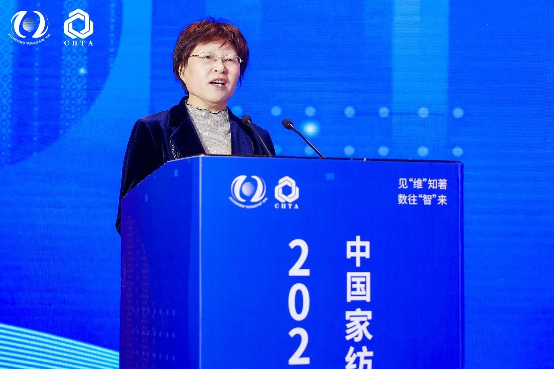 中國(guó)家用紡織品行業(yè)協(xié)會(huì)會(huì)長(zhǎng)朱曉紅主持嘉賓致辭環(huán)節(jié)。