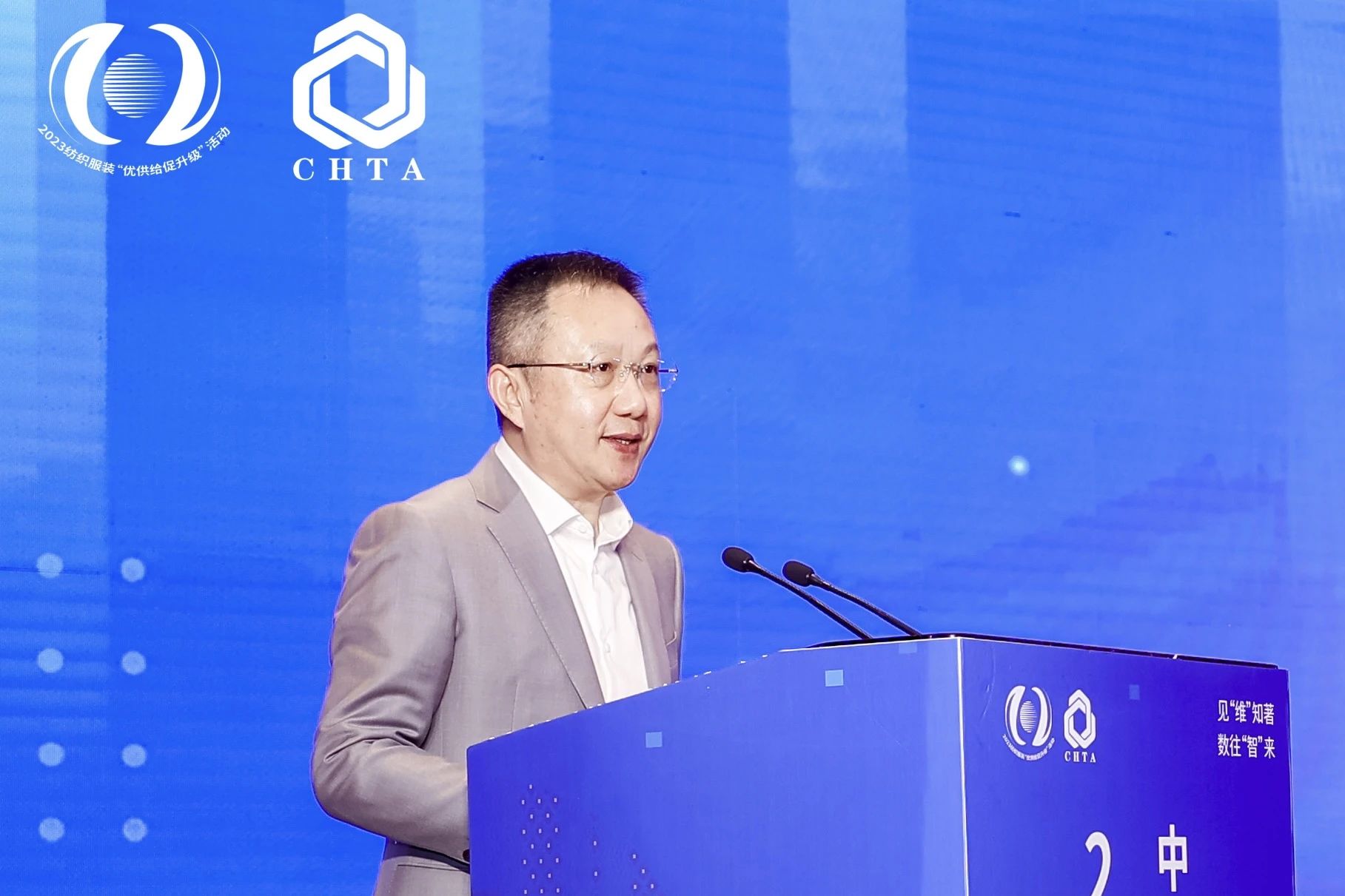 中國(guó)家用紡織品行業(yè)協(xié)會(huì)副會(huì)長(zhǎng)劉兆祥主持主旨報(bào)告環(huán)節(jié)。