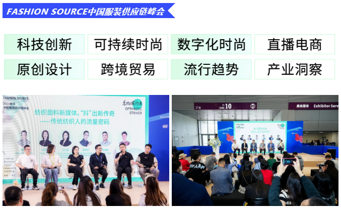 Fashion Source深耕產(chǎn)業(yè)二十余年,如今不僅只是紡織服裝行業(yè)上下游彼此互聯(lián)、獲取訂單的傳統(tǒng)展貿(mào)平臺(tái),更是引領(lǐng)產(chǎn)業(yè)趨勢(shì)、釋放前瞻訊號(hào)、扶持新銳力量、打造行業(yè)標(biāo)桿的全球性發(fā)布平臺(tái)。從展期延展至全年365天,F(xiàn)ashion Source將不斷推出系列精彩紛呈的活動(dòng),一切以實(shí)現(xiàn)高效商貿(mào)交流為目標(biāo),建立起以秀展聯(lián)動(dòng)、趨勢(shì)發(fā)布、論壇發(fā)聲、商貿(mào)配對(duì)、商業(yè)落地為核心的完整供應(yīng)鏈展會(huì)體系。