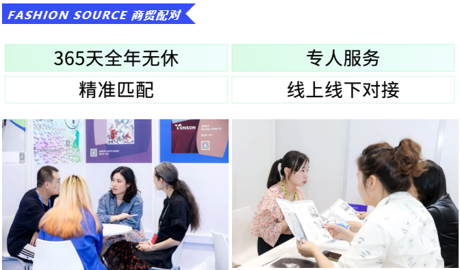 Fashion Source多年來致力鏈接優(yōu)質(zhì)資源,并持續(xù)對(duì)業(yè)內(nèi)的重點(diǎn)渠道、重點(diǎn)買家進(jìn)行深挖和精準(zhǔn)邀約。展前Fashion Source將針對(duì)10W+獨(dú)家數(shù)據(jù)庫(kù),一對(duì)一邀約紡織服裝行業(yè)品牌商、渠道商、電商等企業(yè)中任職的采購(gòu)/設(shè)計(jì)/研發(fā)等核心買家群體;展中開展多場(chǎng)面對(duì)面交流、類型豐富的商貿(mào)配對(duì),精準(zhǔn)對(duì)接、聯(lián)通供需,筑起雙方的溝通橋梁,為參展企業(yè)帶來更寬廣高效的市場(chǎng)營(yíng)銷渠道。