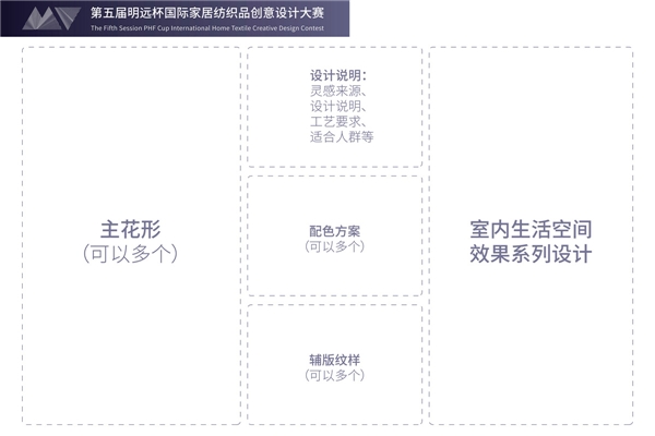 1、參賽者通過畫稿設(shè)計,以整體家居系列紡織品設(shè)計的方式對主題進行闡釋、表達。參賽作品應(yīng)符合大賽主題與宗旨,突出整體家居系統(tǒng)的系列化設(shè)計。