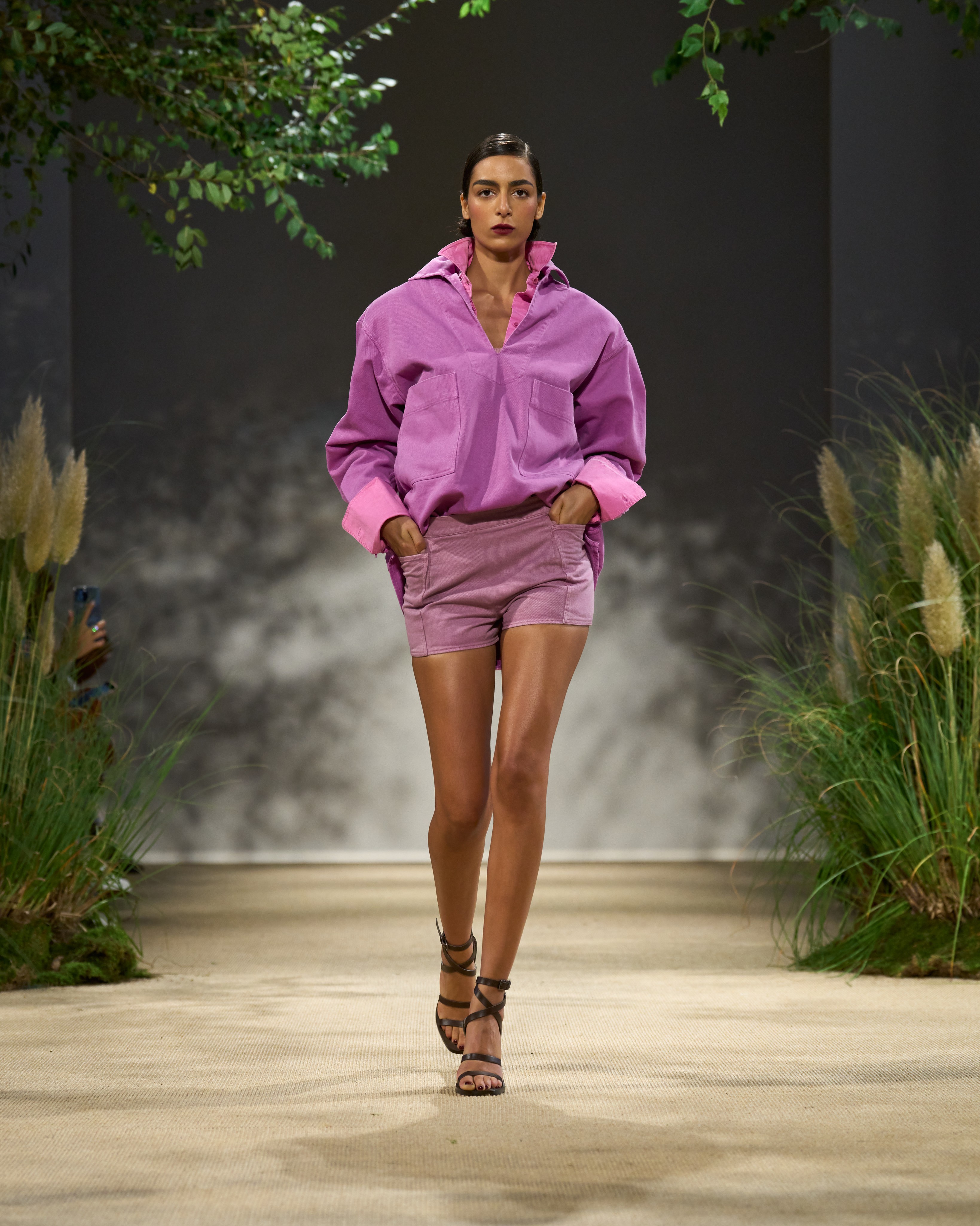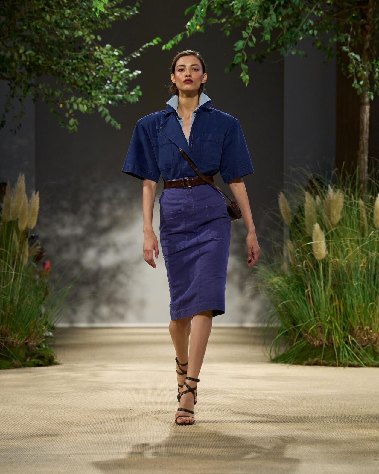 Max Mara 2024 春夏系列,以當(dāng)代都市視角詮釋田園元素,以英國女子地面防衛(wèi)軍為靈感,將女孩們的馬褲、連體衣以及經(jīng)典工裝化作迷人質(zhì)樸的實(shí)用細(xì)節(jié)。獨(dú)具個性的斜紋棉布著染斑斕色彩,恰似仲夏時節(jié)鄉(xiāng)村花園中爭奇斗艷的香豌豆花。