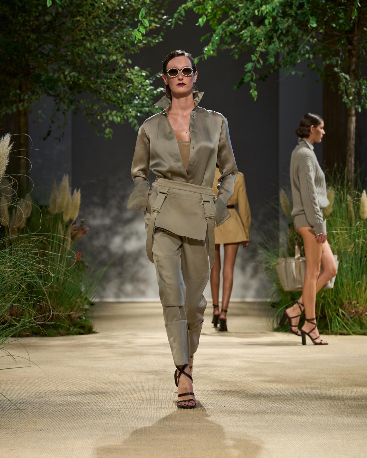 設(shè)計精良的風(fēng)衣、瀟灑的軍旅風(fēng)夾克以及連身褲則以中性沙色呈現(xiàn),平添一絲低調(diào)奢華氣質(zhì)。