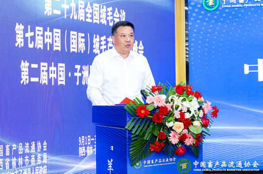 中國畜產(chǎn)品流通協(xié)會會長潘種樹,中國畜產(chǎn)品流通協(xié)會第六屆會長候選人、中國農(nóng)業(yè)生產(chǎn)資料集團有限公司專職副書記馮建芳,陜西省紡織行業(yè)協(xié)會會長嚴家民,榆林市委副書記李雄斌,榆林市委常委、統(tǒng)戰(zhàn)部部長王華勝,榆林市委常委、副市長趙勇,陜西省商務廳流通業(yè)發(fā)展處處長王濤,奧中商會會長喬治•章格(Dr.GeorgZanger)出席會議。榆林市相關部門、單位負責人,兄弟市縣區(qū)政府及相關部門、單位負責人等參加會議。