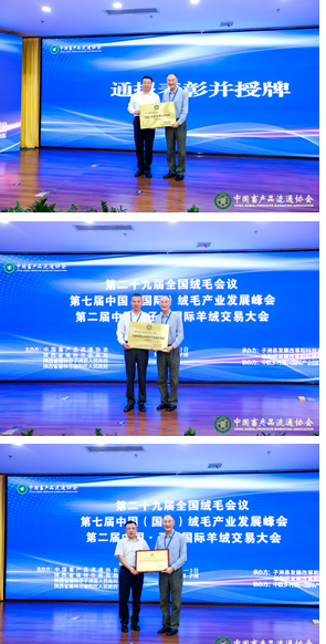 此次會議,中國畜產(chǎn)品流通協(xié)會還宣布了子洲縣冠名“中國(子洲)優(yōu)質(zhì)山羊絨縣”、中歐(子洲)國際鄉(xiāng)村振興產(chǎn)業(yè)園冠名“全國優(yōu)質(zhì)山羊絨全產(chǎn)業(yè)鏈示范園”的決定并授牌。并授予榆陽輕紡產(chǎn)業(yè)園為“中國(榆林)絨毛產(chǎn)業(yè)發(fā)展試行園區(qū)”;內(nèi)蒙古赤峰東黎羊絨股份有限公司等13家企業(yè)被授予2021-2022 年度中國畜產(chǎn)行業(yè)優(yōu)秀電商企業(yè);陜西應馬安絨山羊養(yǎng)殖有限公司等4家企業(yè)被授予 2021-2022 年度中國絨山羊優(yōu)秀種源基地。