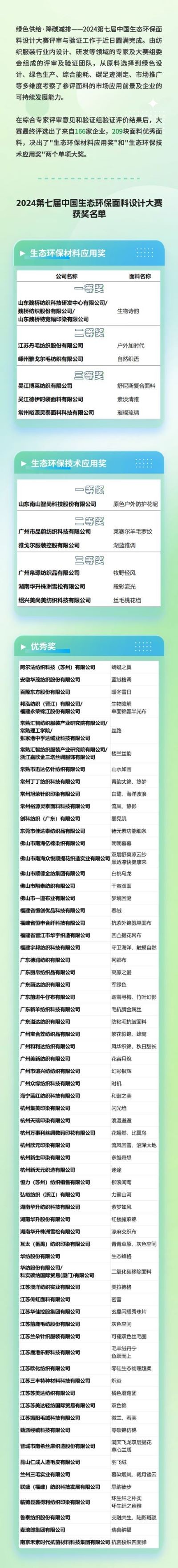 重磅!2024第七屆中國生態(tài)環(huán)保面料設(shè)計大賽獲獎名單正式揭曉!