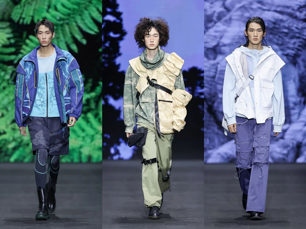 首批入庫品牌發(fā)布之后,一場定位于“未來運動美學全景演繹”的泛運動超級大秀精彩上演。這場大秀匯聚了在首屆“千禧”杯服裝設計大賽中涌現(xiàn)出的60套優(yōu)秀設計作品。中國青年設計力量以多元化的運動項目為載體,融合攀巖、滑雪、徒步、露營、潛水、劍術等多種戶外體驗,通過前沿材料的創(chuàng)新應用,探索運動時尚的全新邊界,展示纖維材料在功能性、舒適性和創(chuàng)意表達上的無限可能。大秀從科技感和極限運動為主調的戶外探險拉開序幕,到動感與時尚的城市運動系列,再到輕松舒適的山野漫步系列,最后以充滿童趣的溫馨畫面結尾,也象征著未來的希望。
