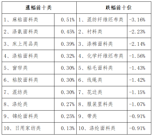 三、服裝面料環(huán)比回縮,價(jià)格指數(shù)環(huán)比下跌
