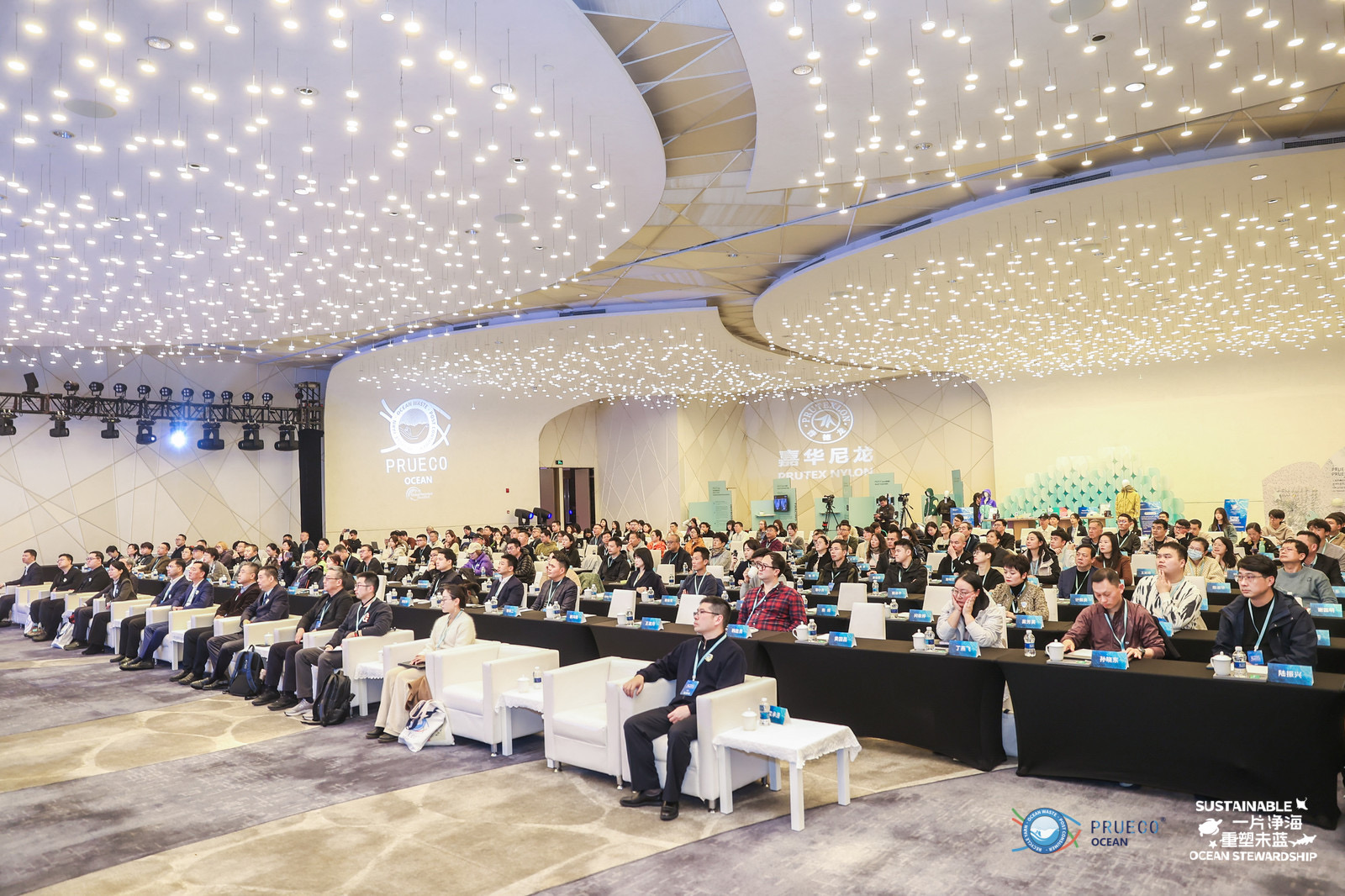 臺(tái)華新材料集團(tuán)股份有限公司董事長施清島,臺(tái)華新材料集團(tuán)股份有限公司總裁沈衛(wèi)峰,中國紡織工業(yè)聯(lián)合會(huì)產(chǎn)業(yè)部副主任程皓,江蘇省淮安市洪澤區(qū)委常委、組織部部長、開發(fā)區(qū)黨工委書記王加祥,浙江嘉華特種尼龍有限公司運(yùn)營事業(yè)部總經(jīng)理高玲,浙江嘉華特種尼龍有限公司運(yùn)營事業(yè)部常務(wù)副總經(jīng)理沈俊超,東華大學(xué)材料科學(xué)與工程學(xué)院教授/博導(dǎo)、高性能纖維及制品教育部重點(diǎn)實(shí)驗(yàn)室主任王華平教授,超盈紡織集團(tuán)首席科學(xué)家胡軍巖博士,SGS時(shí)尚與服飾科技服務(wù)全球技術(shù)創(chuàng)新部項(xiàng)目經(jīng)理馬瀾博士,中國流行色協(xié)會(huì)秘書長王淼,世優(yōu)技術(shù)部經(jīng)理張韜,馬克華菲(上海)商業(yè)有限公司生態(tài)賦能副總監(jiān)尤小北等多位領(lǐng)導(dǎo)嘉賓受邀蒞臨,同400+與會(huì)嘉賓一起,見證嘉華PRUECO® OCEAN全球首創(chuàng)化學(xué)法海洋再生技術(shù)與海洋再生尼龍新品的重磅發(fā)布,并共同展望紡織服裝行業(yè)攜手共建海洋生態(tài)、推動(dòng)產(chǎn)業(yè)可持續(xù)進(jìn)程的“藍(lán)色”未來。