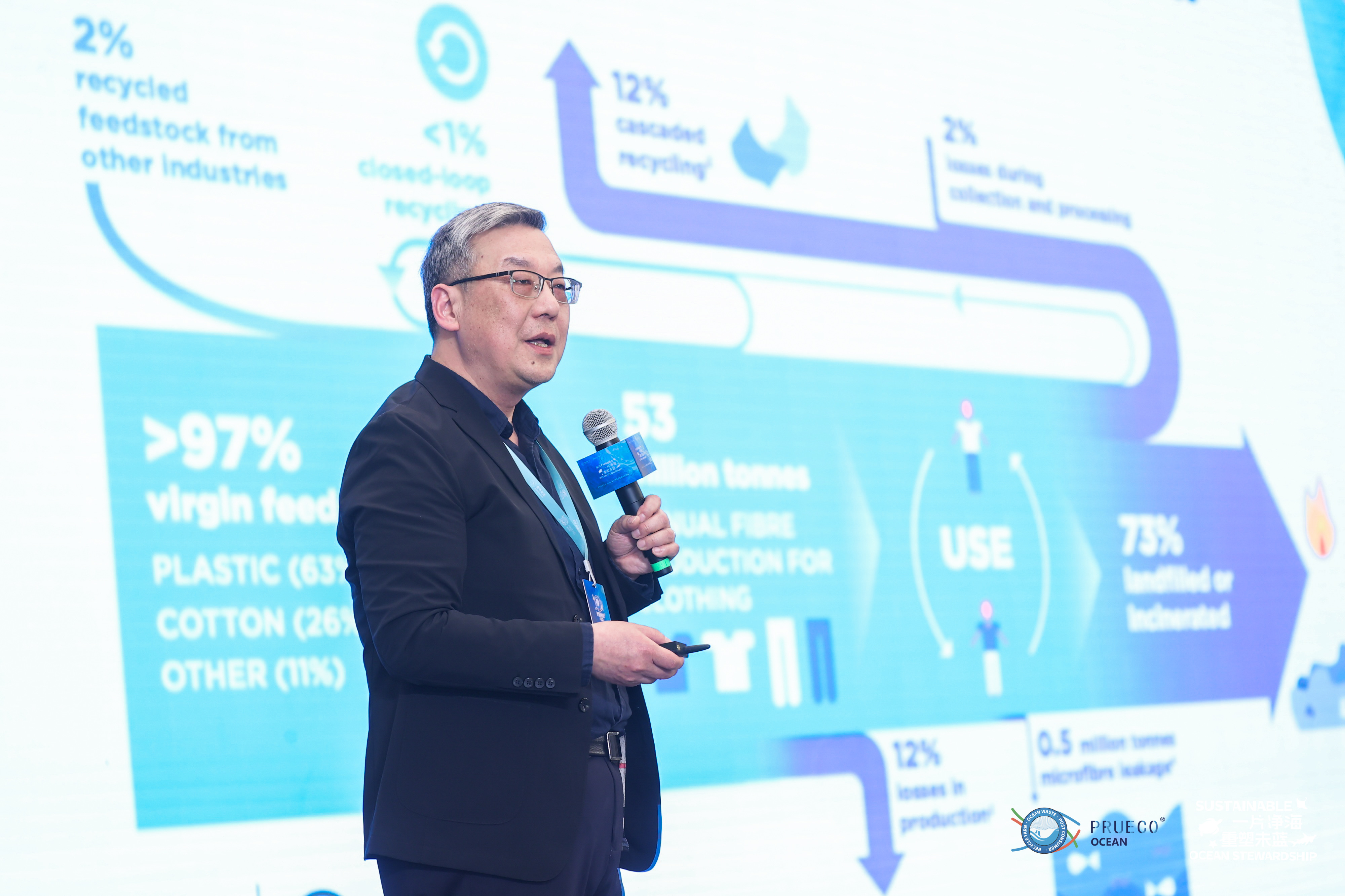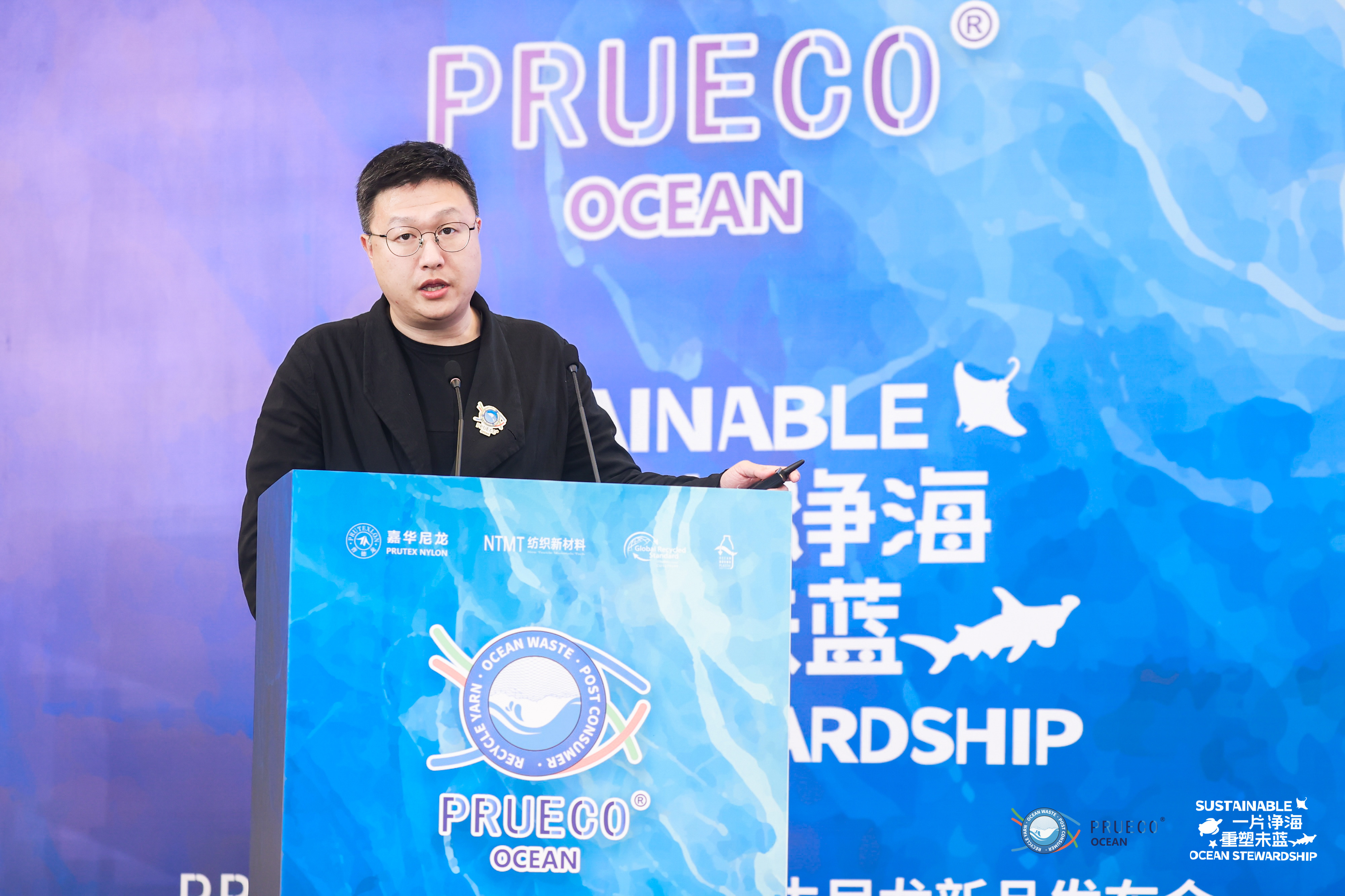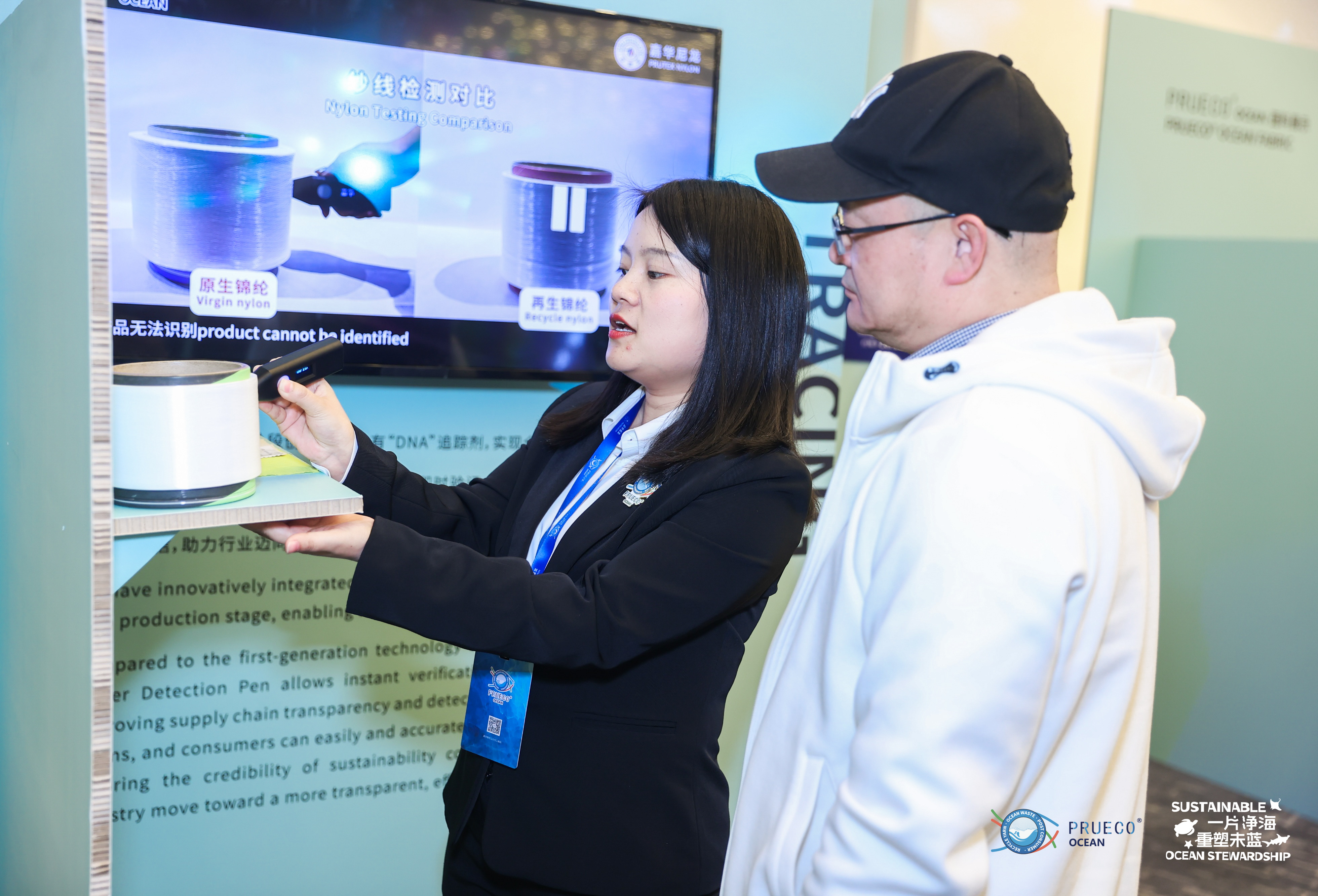 “PRUECO® 的品牌使命是降低原生石化資源使用,減少對(duì)地球生態(tài)的破壞。而海洋里有著數(shù)百萬噸的塑料垃圾,且預(yù)計(jì)到2050年塑料垃圾將超過魚類,這其中近10%來自幽靈漁具。”浙江嘉華特種尼龍有限公司運(yùn)營事業(yè)部常務(wù)副總經(jīng)理沈俊超以數(shù)據(jù)闡述了嘉華尼龍聚焦海洋幽靈漁具回收的關(guān)鍵原因,隨后,也就嘉華作為“全球唯一一家布局海洋回收網(wǎng)點(diǎn)的企業(yè)”的優(yōu)勢(shì),以及PRUECO® OCEAN全球首創(chuàng)化學(xué)法海洋再生技術(shù)的各項(xiàng)優(yōu)勢(shì)與產(chǎn)品開發(fā)思路進(jìn)行了詳細(xì)介紹。“此外,PRUECO® OCEAN從再生切片生產(chǎn)開始加入的嘉華獨(dú)有“DNA”追蹤劑,確保了每一件產(chǎn)品全鏈路都可追溯,這讓PRUECO®吊牌可以成為您環(huán)保產(chǎn)品的專屬環(huán)保標(biāo)識(shí),幫助您更好的講述環(huán)??沙掷m(xù)故事。”