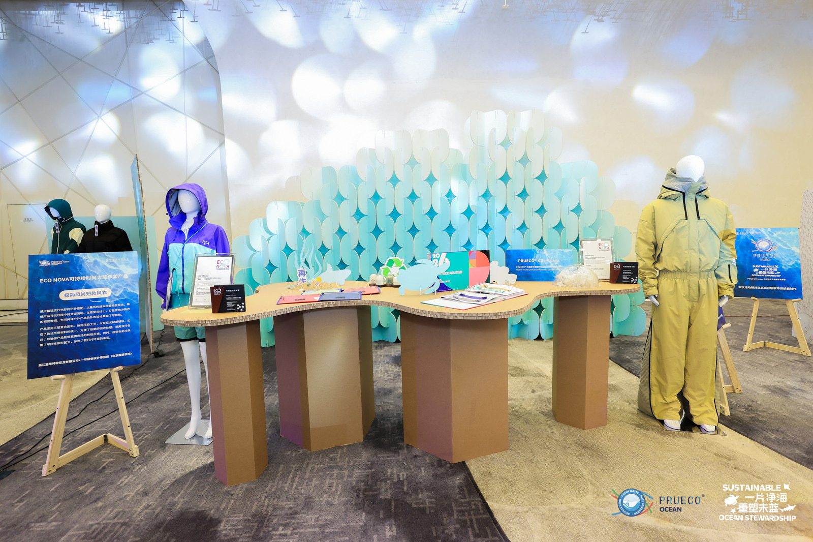 發(fā)布會(huì)現(xiàn)場,本次發(fā)布會(huì)的“主角”PRUECO® OCEAN從廢棄漁網(wǎng)到再生錦綸再到錦綸消費(fèi)品的全流程靜態(tài)場景化展示,讓與會(huì)嘉賓們更為清晰的看到了這一新品的可持續(xù)屬性;而以PRUECO® OCEAN再生尼龍材料制成的ECO NOVA可持續(xù)時(shí)尚大獎(jiǎng)獲獎(jiǎng)產(chǎn)品“多形態(tài)功能滑雪服”與“極簡風(fēng)尚短款風(fēng)衣”的呈現(xiàn),也讓PRUECO® OCEAN的時(shí)尚潛力得以彰顯。