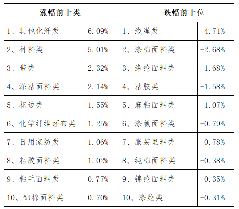 三、服裝面料環(huán)比回縮,價格指數環(huán)比下跌