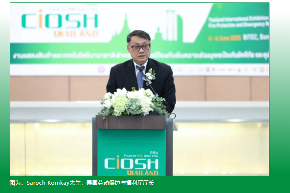在開幕式上,泰國勞動保護(hù)與福利廳廳長Saroch Komkay先生表示:“泰國勞工部非常歡迎泰國勞保會等與‘安全泰國’國家戰(zhàn)略高度契合的展會或活動的舉辦。我們的目標(biāo)是降低全國的工傷事故率、提升安全標(biāo)準(zhǔn),為雇主、安全管理人員及勞動者提供切實可行的裝備與知識,構(gòu)建更安全、高效的工作環(huán)境,并進(jìn)一步提高人們的安全意識。”