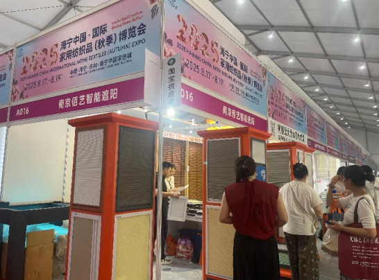 南京佰藝智能遮陽向買家們展示的是各色手動與智能遙控內(nèi)開窗遮陽蜂巢簾。據(jù)南京佰藝智能遮陽總經(jīng)理徐峙平介紹,這種蜂巢簾因特殊結(jié)構(gòu),具有出色的隔熱性能,通電款與鋰電池款,能使其適用于窗戶與天棚,一鍵遙控控制,輕松靈活調(diào)節(jié)光線和通風(fēng),升級無紡布材質(zhì)不僅性價比高,防水防曬特性還能無懼浴室潮濕環(huán)境與暴曬,抗老化高達(dá)20年。“我們目前整體客戶情況來看,選擇智能款的比例僅在3%,但同比仍是呈現(xiàn)上升趨勢的,且多以家庭客戶為主,證明大眾日常生活是有智能家紡需求的。第三次來參展海寧家博會,現(xiàn)場問詢的買家也驗證了我們的這一想法。”