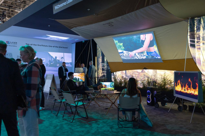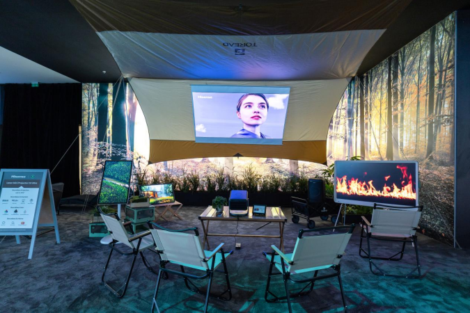 在IFA 2025上,Vidda四款三色激光投影組成強(qiáng)勢產(chǎn)品矩陣,其中備受矚目的焦點,正是Vidda的旗艦C系列。通過探路者特別搭建的露營場景,吸引了大量觀眾駐足落座體驗。在真實場景的襯托下,三色激光技術(shù)的優(yōu)勢盡顯,即使在展臺人流密集、光線充足的復(fù)雜環(huán)境中,這些投影仍能投射出清晰銳利的畫面,贏得現(xiàn)場一致好評。