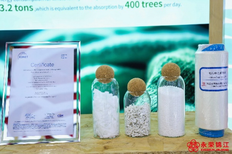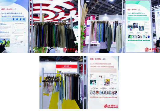 另一邊的“E-SUNLON®愛賽綸®”則講述著循環(huán)經(jīng)濟的故事。該產(chǎn)品通過獨創(chuàng)的閉環(huán)再生技術(shù),將消費后廢舊紡織品轉(zhuǎn)化為再生纖維,生產(chǎn)過程碳足跡較傳統(tǒng)工藝降低65%,每噸產(chǎn)品節(jié)水50%以上,目前已取得GRS、LCA、EPD等國際認證,成為可持續(xù)時尚的優(yōu)選材料。