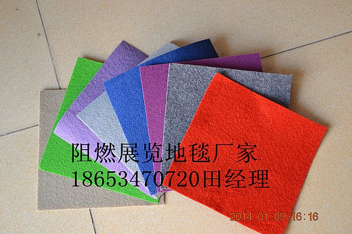 1:展覽地毯的用料分:滌綸短纖維和丙綸短纖維。