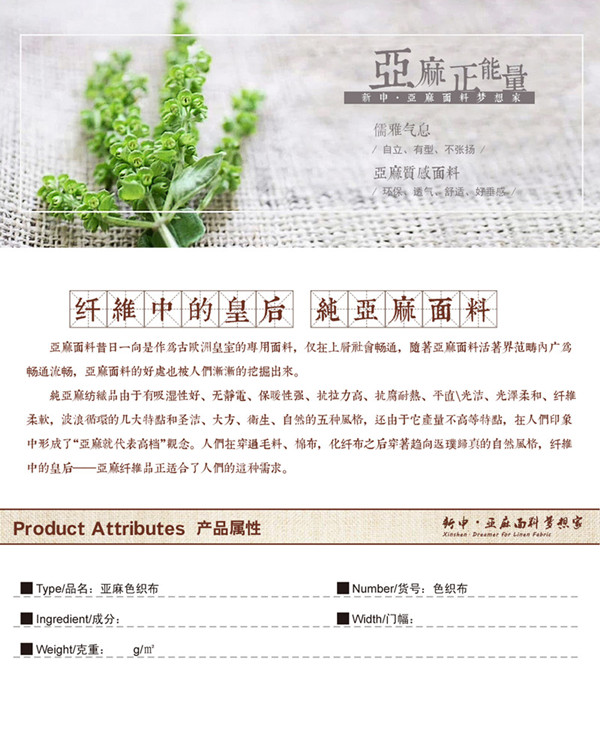 關(guān)鍵字:亞麻面料,百搭舒適,透氣舒適,素凈淡雅,優(yōu)質(zhì)亞麻