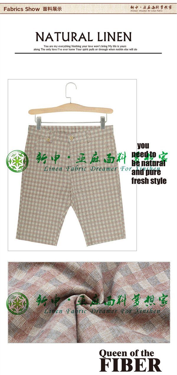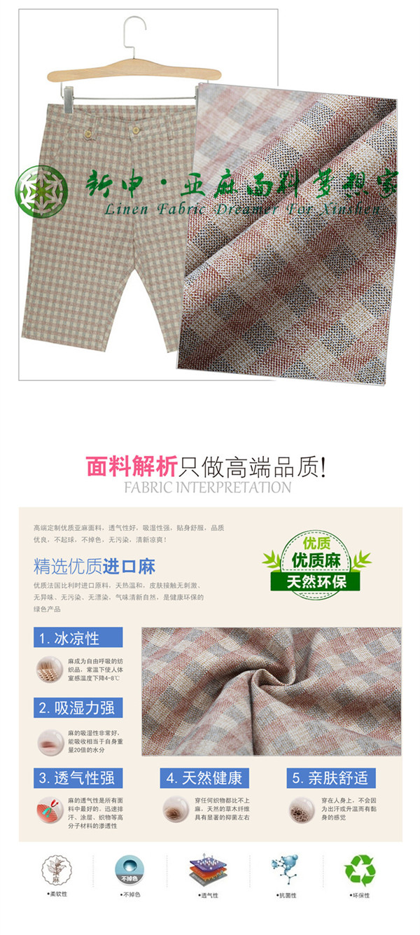 亞麻男士色織褲子面料 高檔時尚亞麻面料