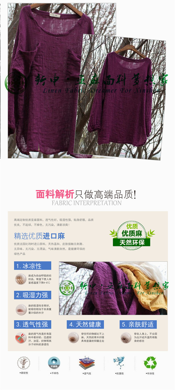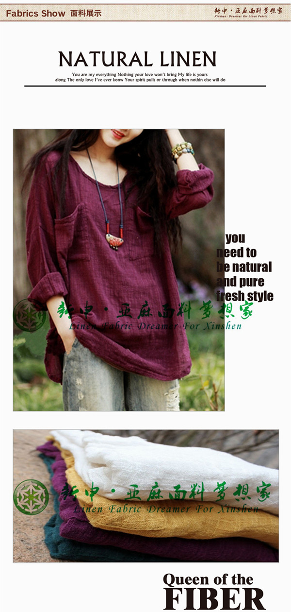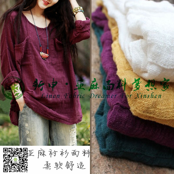 原創(chuàng)設計亞麻女裝上衣面料氣質(zhì)亞麻長袖罩衫