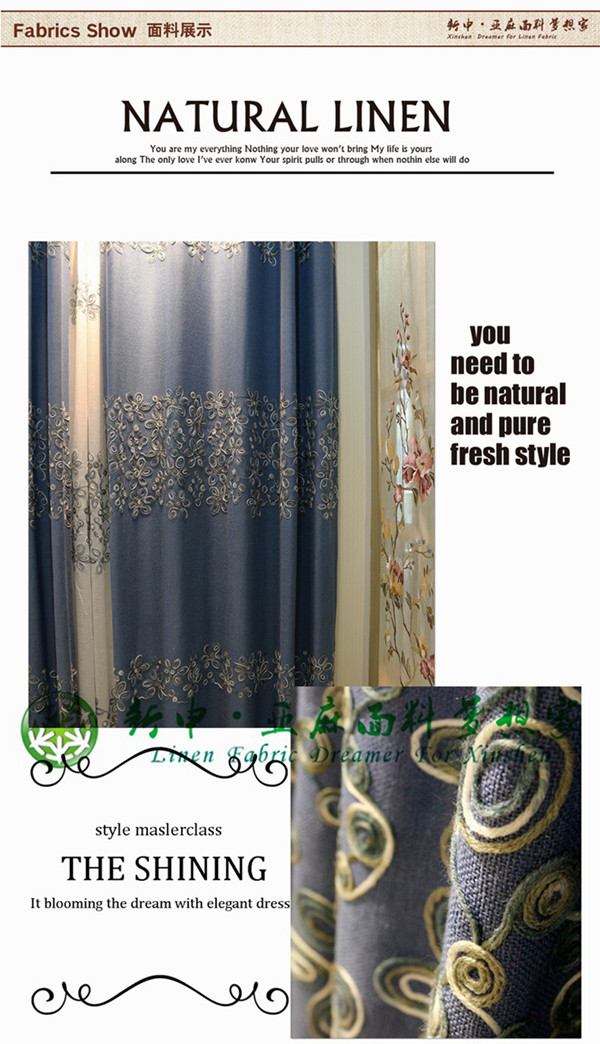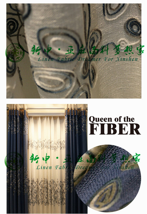 現(xiàn)代簡(jiǎn)約布藝窗簾盤繡亞麻面料 遮光時(shí)尚
