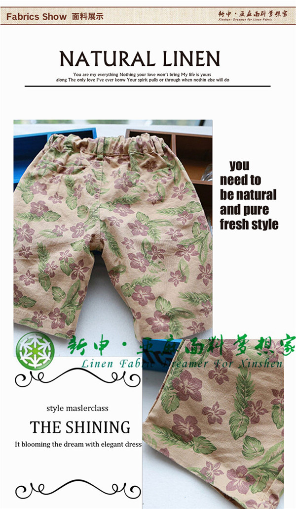 時(shí)尚潮流男童純亞麻休閑短褲中褲5分褲面料