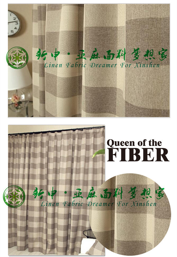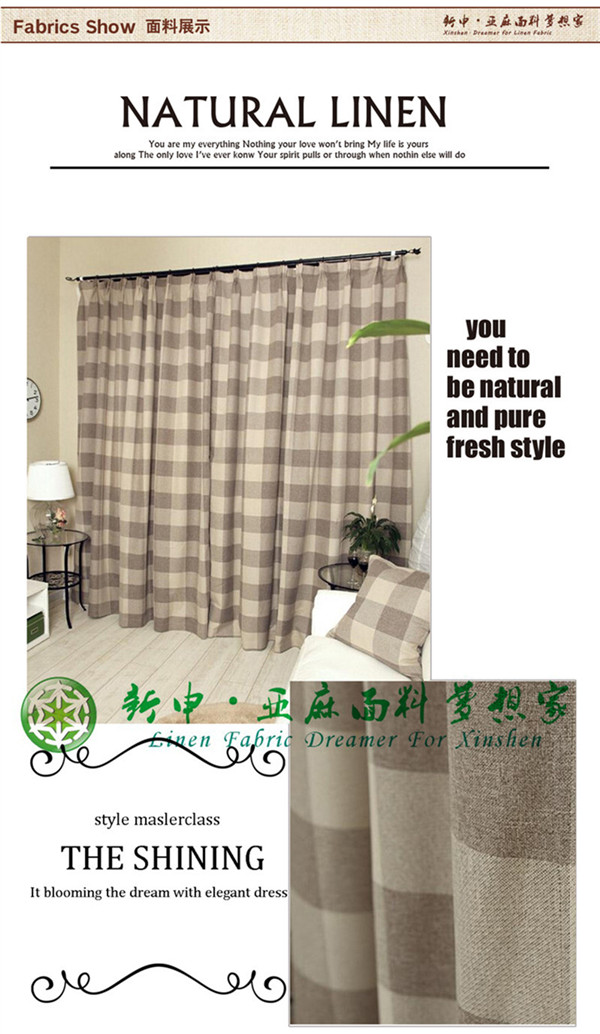美式田園鄉(xiāng)村風(fēng)格亞麻棉方格圖案遮光簾布料
