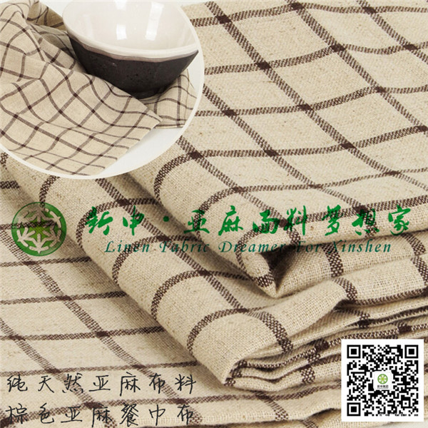 純亞麻棕色格子餐巾布布藝面料 自然抑菌