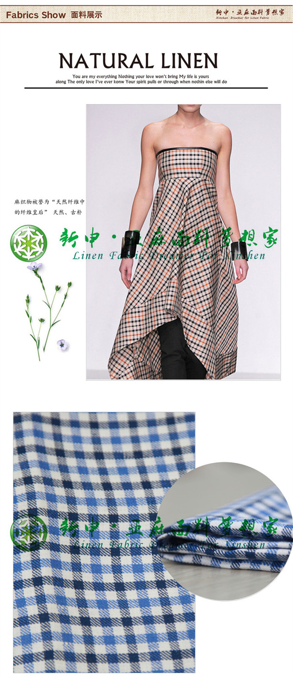 新款純亞麻夏季格紋款式女裝布藝面料