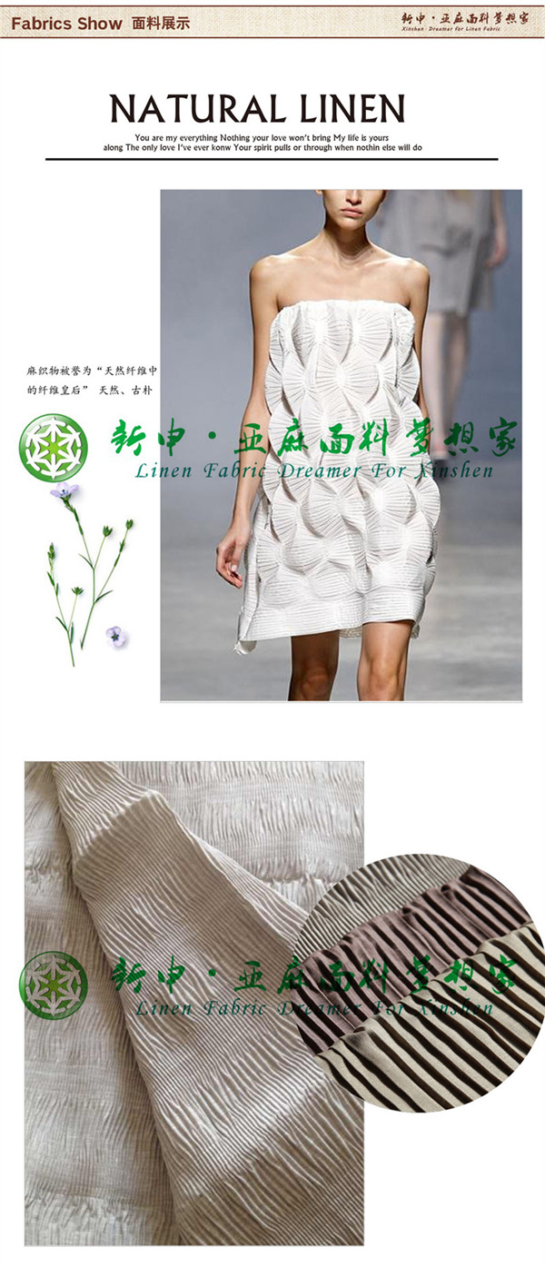 純亞麻壓皺女裝面料 面料趨勢 機械褶皺