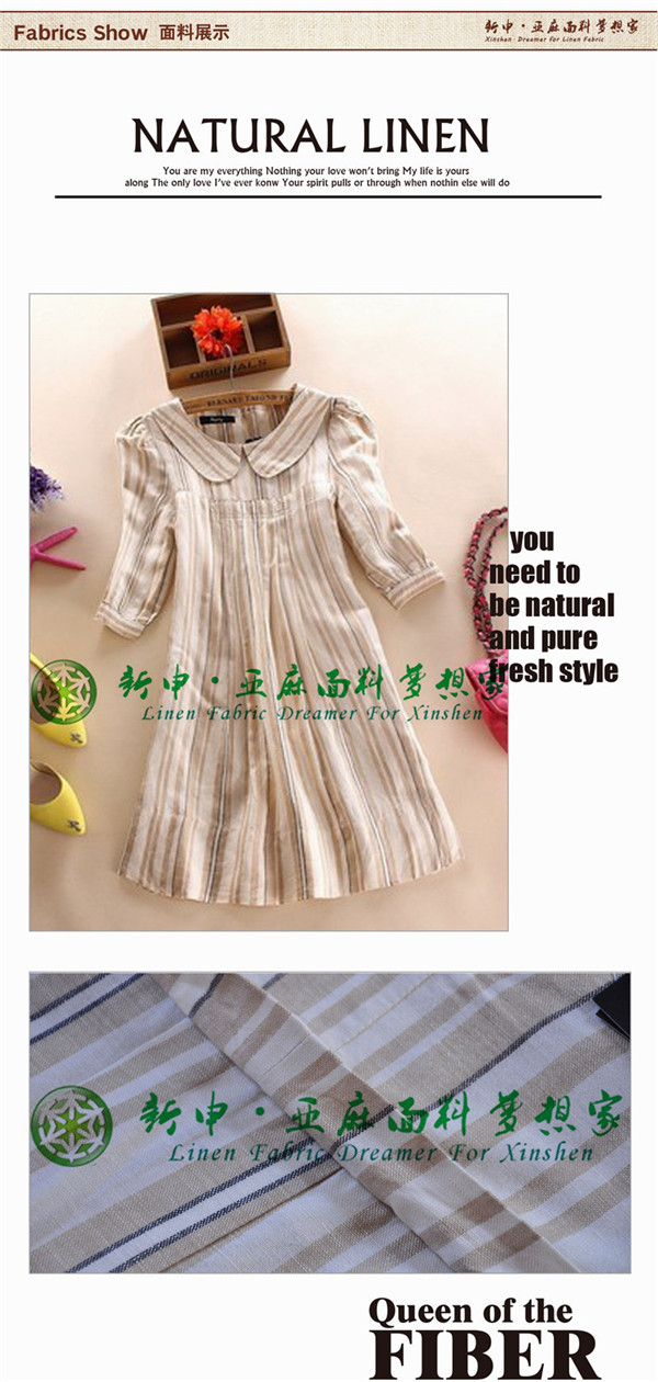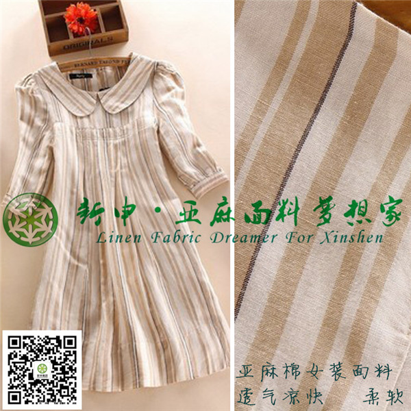 時尚學院風條紋女裝連衣裙棉麻布藝面料