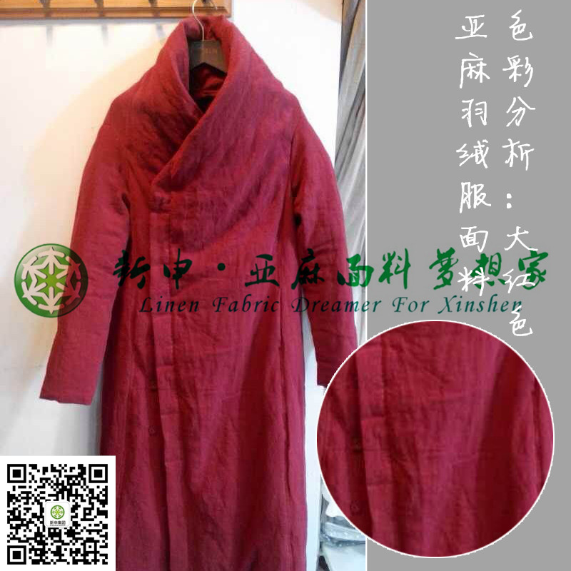 優(yōu)質(zhì)亞麻紅色羽絨服布藝面料保暖舒適