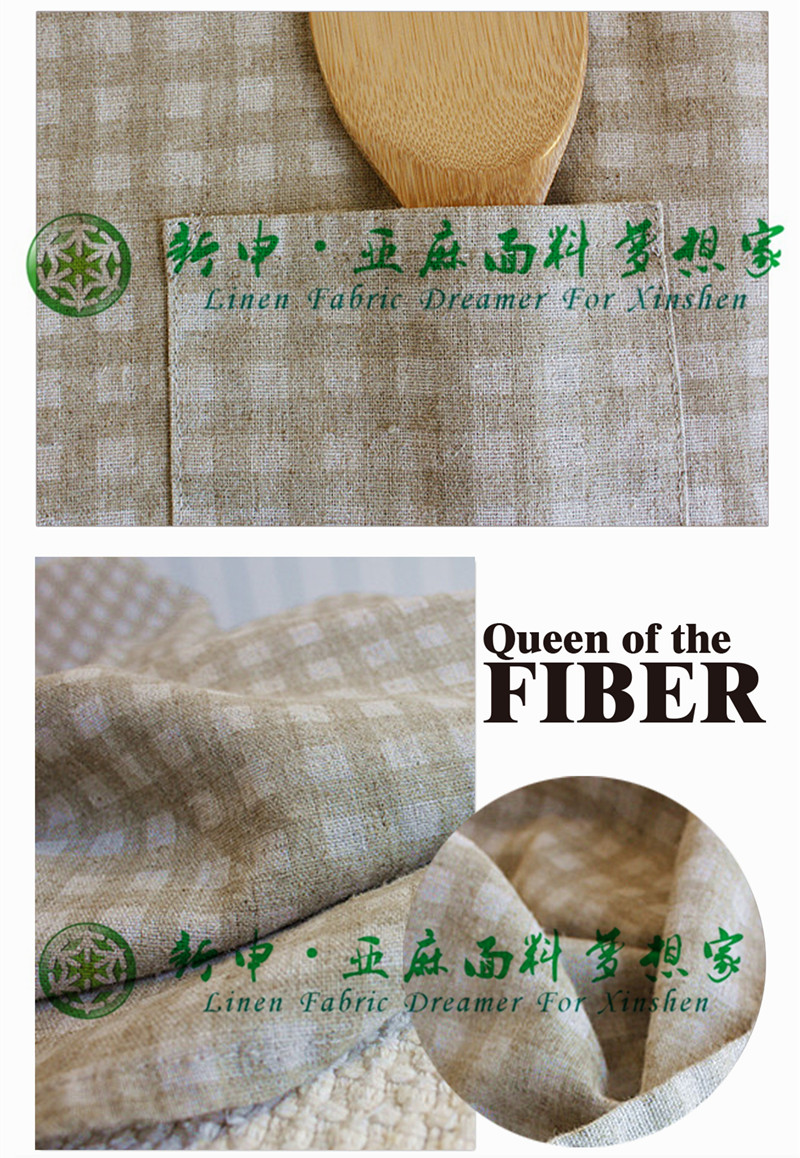 日式簡約格子條紋亞麻水洗工藝圍裙面料