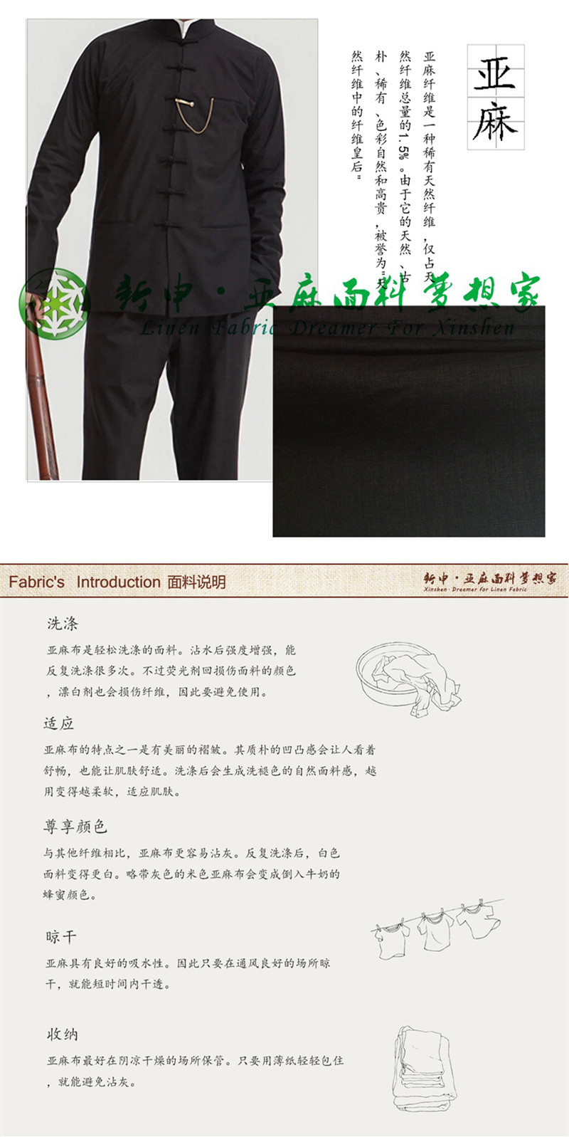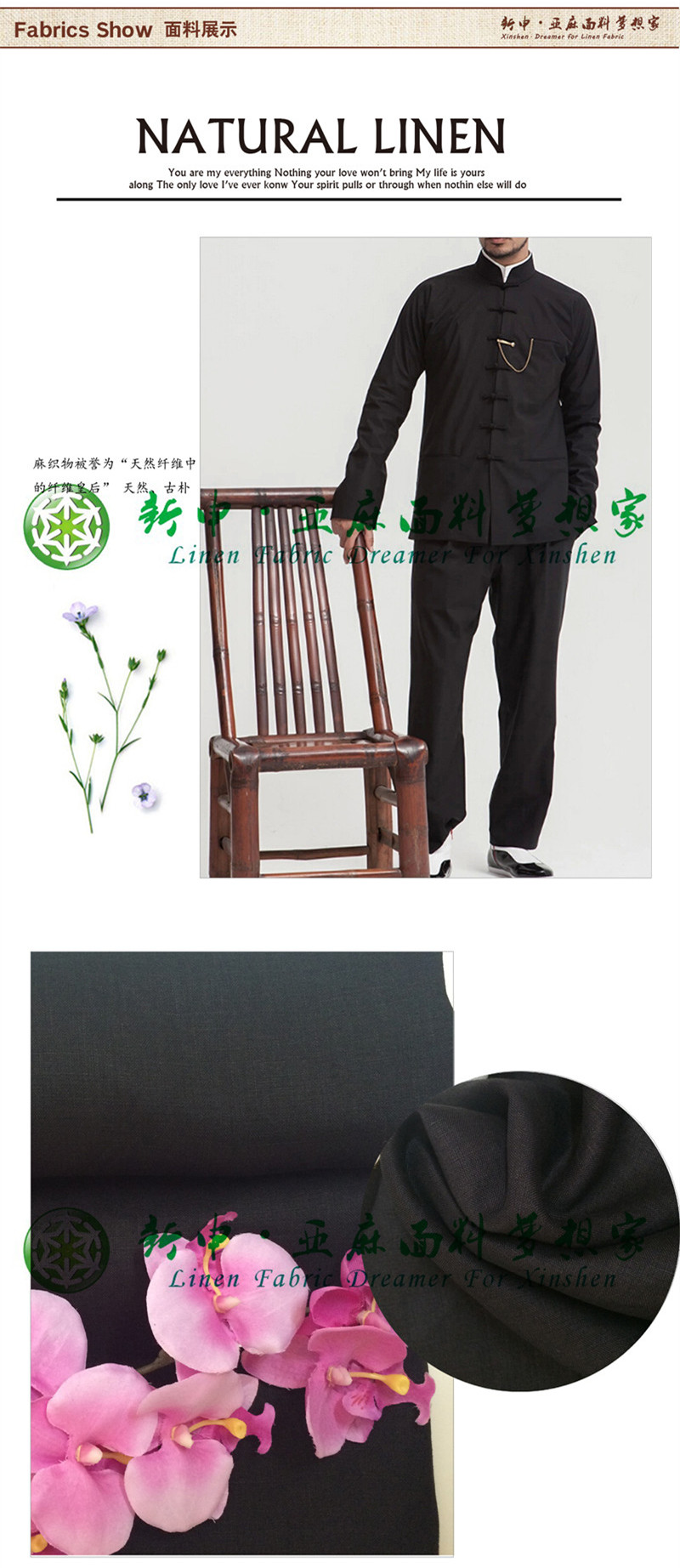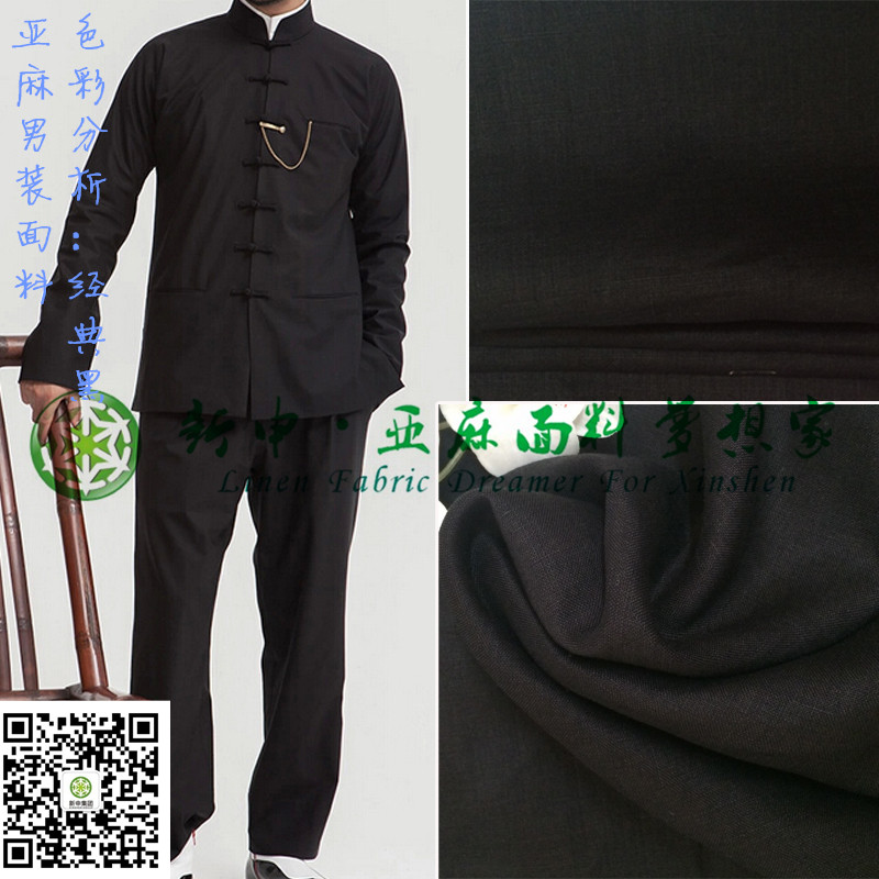 2015新款亞麻經(jīng)典黑男士新中裝布藝面料