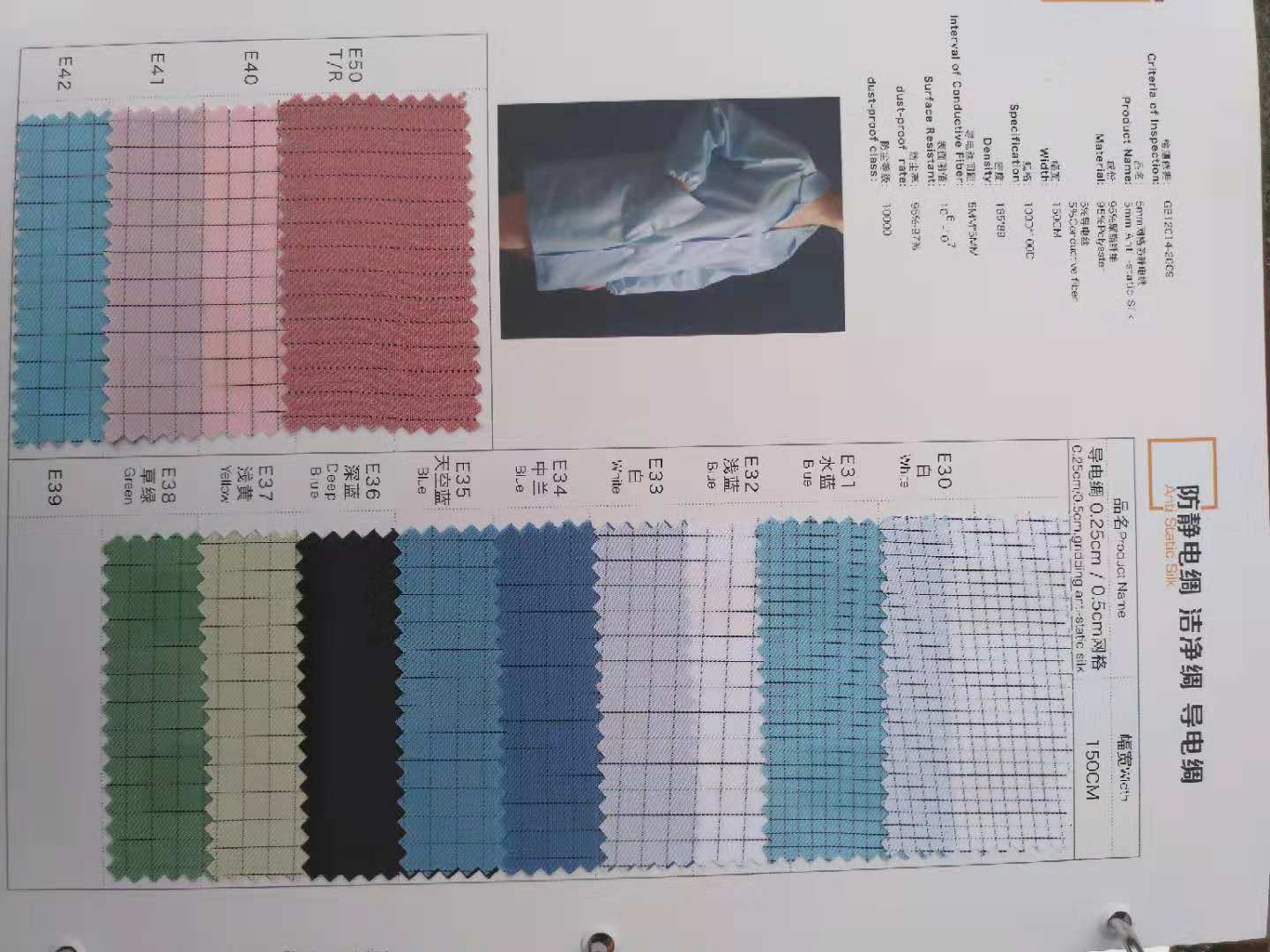 我廠的防靜電產(chǎn)品生產(chǎn)從最初的紗線和導(dǎo)電絲的選擇,到最終的紡織染整都進(jìn)行了嚴(yán)格的品質(zhì)把控,以有效保障面料的各種功能性。面料具有潔凈度高,不沾塵,耐水洗。防靜電性能優(yōu)越,手感細(xì)膩,光澤亮,耐用性佳,色牢度高,舒適度佳等特性。